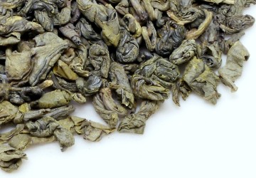 herb-spritziger Grüntee mit kräftiger Tasse. Kleines hartgerolltes dunkelgrünes Blatt. Bester Gunpowder aus Zhejiang. http://