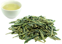 Die östliche Provinz Zhejiang ist weltberühmt für den Lung Ching Grüntee, der am Westsee Xihu bei der Stadt Longjing -Drachenbrunnen- seit der Tang-Dynasty angebaut wird. Zur Herstellung von Lung Ching werden die frisch gepflückten Teeblätter mehrmals unter ständiger Bewegung von Hand in Eisen-Pfannen kurz erhitzt. Durch die Hitze werden die Blattporen verschlossen und Enzyme zerstört, die sonst eine Fermentation bewirken. Natürliche Inhaltsstoffe und das feine Aroma der Blätter bleiben dadurch weitgehend erhalten. Die bekanntesten Sorten dieser Herstellungsart sind: Ding Gu Da Fang und Lung Ching (Longjing). Am Blatt dieser Sorten sind oft noch Hitzebläschen zu erkennen