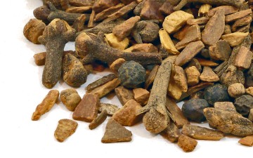 Zutaten:  Zimtstücke*, Pfefferkörner*, Nelken*,  Kardamomsaat*, Ingwerstücke*,.