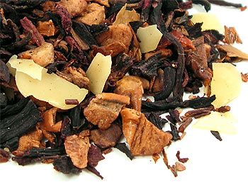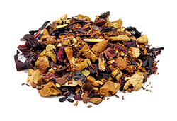 Zutaten: Hibiskus, Apfelstücke, Rooibos, Hagebuttenschalen, Mandel- und Zimt-Stücke, Vanillestücke, natürliches Aroma