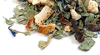 Zutaten: Verbene, Orangenschalen, Zimtstücke, Nelken Sternanis, Anis, Fenchel, Zitronenschalen, Kornblumenblüten;