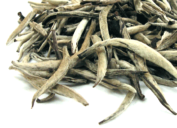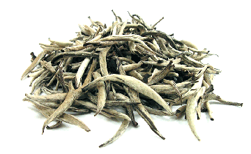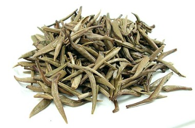 Mo Li Yin Zhen. Ein Weißer Tee, nur aus den jungen Blattknospen mit weißem Flaum. Den Teeknospen werden mehrfach duftig-frische Jasminblüten zugefügt und sobald der Jasmin-Duft in den Tee eingezogen ist, werden die Jasminblüten wieder entfernt. Dieser Vorgang wir bis 10 mal wiederholt.