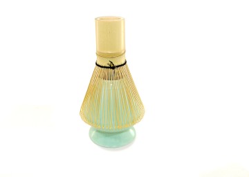 Halter für den Bambusbesen aus Porzellan. Der Besen bleibt beim Trocknen formstabil und ist länger haltbar. Größe: ca. 7 cm hoch und ca. 6,5 cm Durchmesser, Farbe: hellgrün