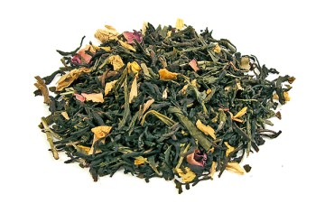 Der fruchtig-weiche Duft nach Tausend und einer Nacht, Zutaten: Mischung aus grünem und schwarzem Tee, Rosenblütenblätter, Sonnenblumenblüten, Jasminblüten, Aroma.