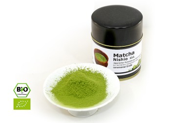 feinster Bio Matcha, ein Ceremonial Grade Pulvertee aus Nishio im Herzen der Aichi Präfektur. Nishio ist eines der ältesten Tee-Anbaugebiet in Japan und neben Uji bei Kyoto eines der zwei Hauptgebiete, in denen höchste Matcha Qualität hergestellt wird.